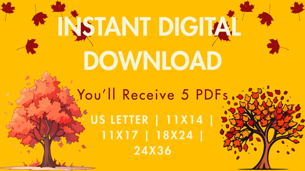 - 5 High-resolution printable PDFs (US Letter + 11x14 + 11x17 + 18x24 + 24x36)